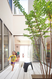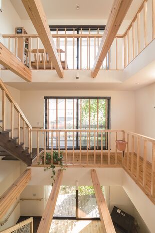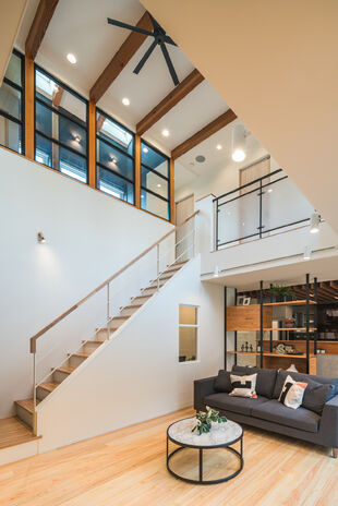限られた敷地で必要な空間を確保するため、あるいは二世帯住宅や併用住宅にと、ニーズが高まっている3階建て以上の住宅。高砂建設では木造住宅でも大開口や柱のない大空間を実現する「SE構法」を手がけているから、木造3階建ても思いのまま。大きな吹き抜けで家中がつながるような間取りでも、外断熱・二重通気のソーラーサーキット工法で一年を通じて快適。明るく開放的な住空間で家族がつながる住まいを得意としている。