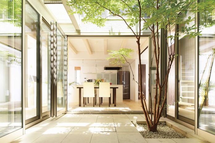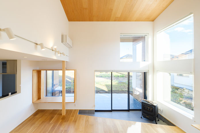 高砂建設がこだわるのは、限られた規模の中でいかに開放的で明るく快適に暮らす家を実現するか。周囲の環境に配慮しつつ、土間のある大空間や大きな窓、さらには吹き抜けなど開放的な空間を設計。これまで積み重ねてきた豊富な経験とノウハウが存分に活かされている。「大きな窓や吹き抜けは冷暖房効率が心配」という方もご安心を。外断熱・二重通気で窓を閉めれば、明るさはそのままに夏涼しく冬暖かく過ごすことができる。