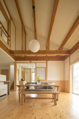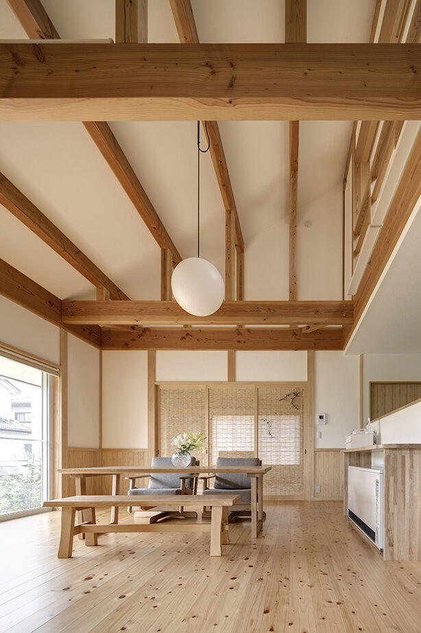 外観は現代の家だが、一歩足を踏み入れると伝統的な日本家屋を思わせるたたずまい。西川材を現しにするため、家全体を芯壁工法に収めているから、ひとつひとつの部屋が美しく見応えのある空間になっている。二重通気工法に加え、障子を上手く使い、冬の寒さに対応しながら、夏の風通しも確保する暮らしの知恵が詰まった家だ。無機質感を好む方も多いと思うが、こうした「日本の伝統」を感じられる家もまた新しい感覚なのだろう。