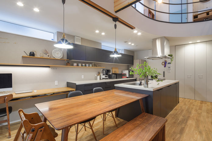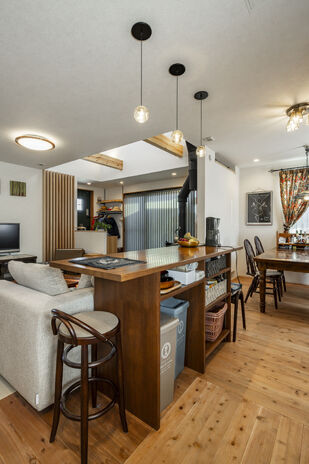 家族が心地よく過ごせる大空間のリビングを実現したかったKさん。明るく開放的で、かつ快適であることを重視して選んだのが外断熱二重通気工法の「ソーラーサーキットの家」だ。さらに無垢材などの自然素材をたっぷり使いたいと考えていたKさんにとって、高砂建設の家づくりはまさにぴったり。ライフスタイルや好みに加え、より暮らしやすい間取り・動線に配慮したプラン、手持ちの家具が映えるインテリア提案も決め手に