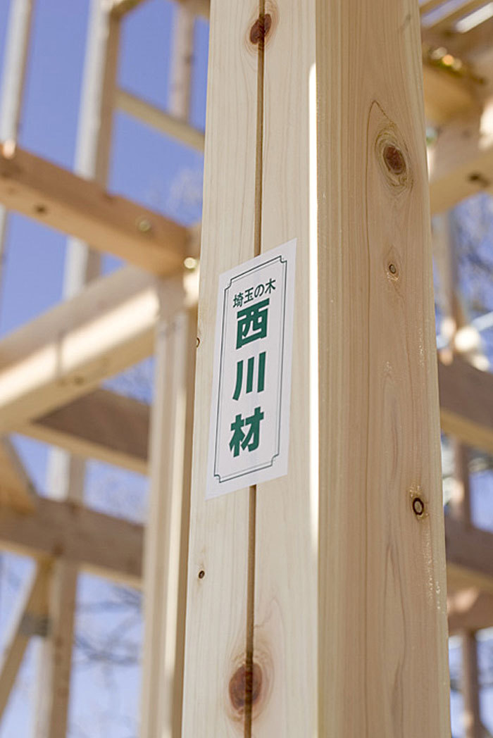 高砂建設は本社を置く埼玉の森で育った「西川材の檜」を構造材として用い、内装にも積極的に採り入れている。関東の名木と言われる「西川材」は300年以上の歴史を持ち、神社仏閣や江戸の町づくりにも多く使われてきた。関東の気候風土に馴染む木を育む地域の森は同社にとっても、施工エリア内に建てた家や家族にとっても新たな「ふるさと」となる。つまり、ふるさとの森とともに、最高峰を目指した家づくりに取り組んでいる。
