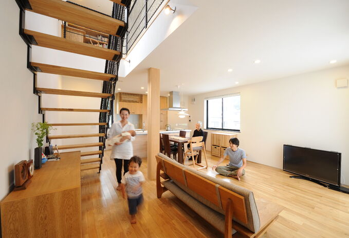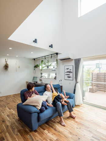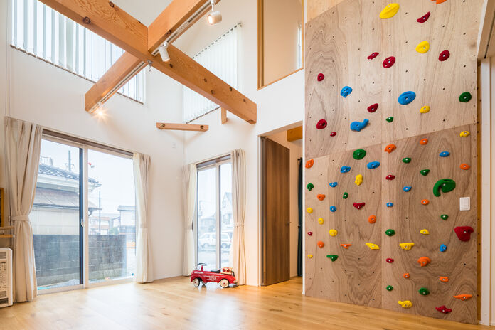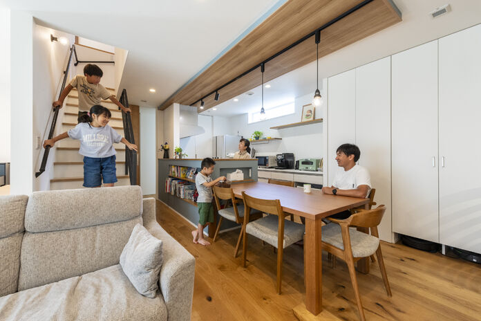 走り回れる広々リビング、さまざまな楽しみ方ができるデッキ・小屋裏・スキップフロア、雨の日でも元気に遊べるクライミングウォール…。子どもたちがワクワクするような空間づくりが得意な高砂建設。素足に気持ちがいい無垢の床など安心の自然素材をたっぷり使いながら、家族がつながる間取りの工夫や家事ラク動線で子どもたちと一緒に過ごす空間と時間を生み出す住まいを提案している。