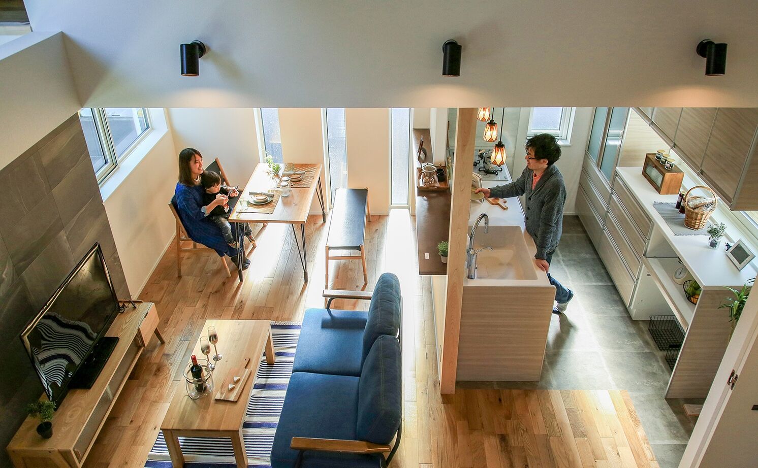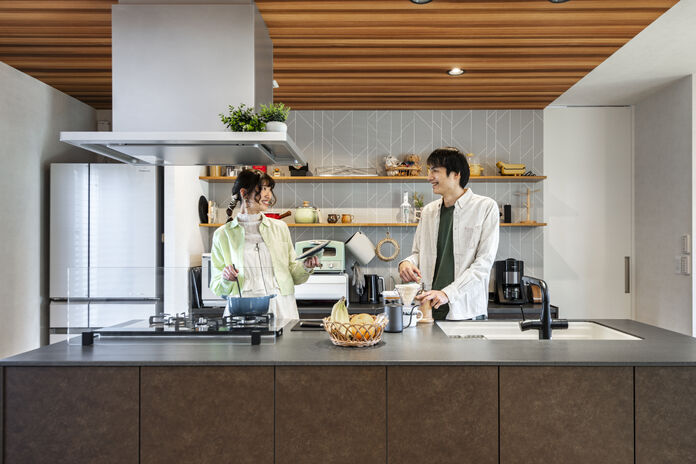 多くの住宅会社を比較する中で、Iさん夫妻は自分たちの理想を実現するには「性能」と「デザイン」の両立が不可欠であると感じたという。高砂建設は、その中でも性能面で圧倒的な存在だった。「外断熱・二重通気工法」により、夏も冬もエアコン一台で家じゅうが快適に保たれる住環境を実現。光熱費を抑えながら、将来にわたって安心して暮らせる技術に心を掴まれた。さらに、性能だけでなくデザイン面においても、理想をかたちにできると確信したという。見学した施工実例や担当者の提案から、「カフェのような家」や無垢材の温もり、使い勝手の良い家事動線、綿密に計画された収納など、自分たちが求めるすべてが実現できると感じた。「性能のためにデザインを妥協する必要はない――そう気づかせてくれたのが高砂建設さんです」と笑顔だ
