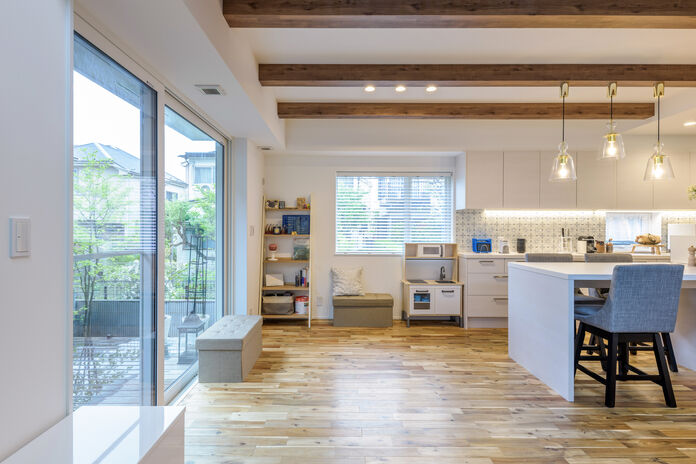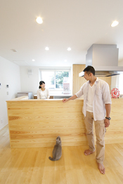 自然が好きで、家を建てたら庭づくりも楽しみたいと考えていたTさん。高砂建設の家づくりを知る中で、自由設計や1年中快適に過ごせる住宅性能にも惹かれたが、何よりも地元埼玉で育った良質な檜材「西川材」を使った住まいに魅力を感じた。高砂建設の木へのこだわりはもちろん、家を建てる地域と同じ風土で育った「西川材」の丈夫さにも安心ができた。また、無垢の床など自然素材をふんだんに使った身体に優しい住まいが建てたいという希望も、高砂建設が得意とする家とピッタリだったこともあり、同社で建てることに迷いはなかった