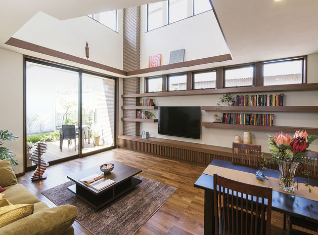 冷暖房効率を高めて快適かつ省エネな暮らしを目指すためには高気密・高断熱が不可欠。安田建設ではスーパーウォール工法を導入し、UA値0.46 、C値0.4以下の断熱性能を追求。日々進化する空調システムにも対応する性能を備えている。吹抜けや仕切り壁の少ない大空間でも1年を通じて居心地よく過ごせるのはもちろん、「オーガニックハウス」の特徴である自然の光と風を取り込む空間づくりも最大限に楽しむことができる