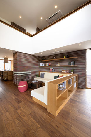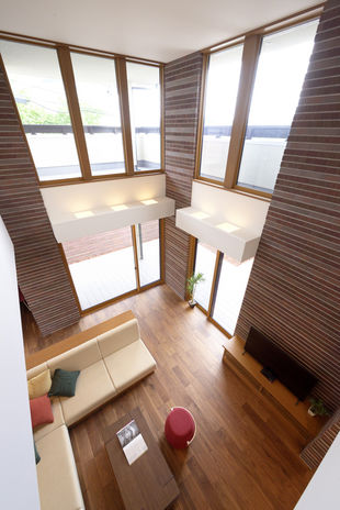 安田建設ではスーパーウォール工法を導入し、UA値0.46 、C値0.4以下の断熱性能を実現。さらにHEMSや太陽光発電システムなどを搭載し省エネで快適な「夏涼しく、冬暖かい」暮らしを実現。高い基本性能は、大きな吹抜けや大開口など、自由度の高い設計を可能に。また、「オーガニックハウス」らしい深い軒を出すデザインや、自然の光や風を取り込むプランニングで、省エネで快適な日々を叶えてくれる