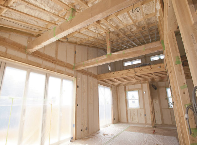無害で高性能の断熱材、極寒のアラスカの観測地でも使用されている「アイシネン」や、高断熱のLow-Eペアガラスなど、ハイグレードな仕様・設備が大きな吹き抜けや間口の広い大きな窓を設けた開放的な空間でも、高気密・高断熱を実現できる秘密。一生涯保証で本当の意味での「安心」と、1年を通して快適な住空間を叶えている。