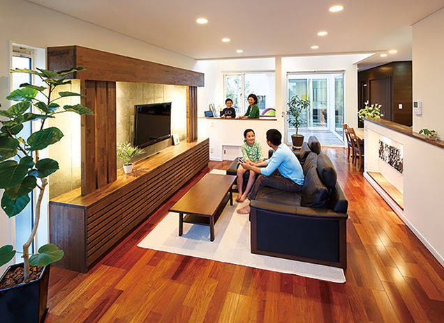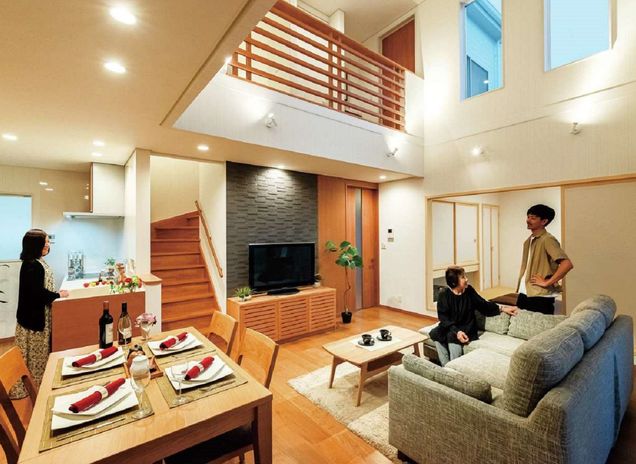 同社は世代を超えて住み継げる、飽きのこない普遍的なデザインを大切に設計。特に切妻屋根や畳、竿縁天井、格子戸、地窓など、幅広い年齢層にくつろぎと懐かしさを与える、伝統的な和の装いを用いたプランは、同社の得意とするところ。モダンなLDKの一角に、キッズスペースや家事スペース、ゲストルームにもなる和室を設けるなど、今の暮らしと融合させた、上質な和モダンの住まいを叶えてくれる。和にこだわるなら、ぜひ相談を。