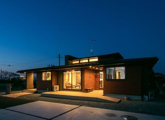 子育て世帯からも高い支持を集める平屋の住まい。同社の手掛ける平屋は、水平方向を意識した美しいデザインが魅力。ゆるやかな勾配の低い屋根と深い庇が家全体をゆったりと覆うようなデザインで、視線の広がりや心の安らぎを与える佇まい。周囲の景観においてひときわ目をひくファサードに仕上がっている。そんなデザイン性の高さだけでなく、効率的な動線やコミュニケーションの取りやすさなどメリットもたくさん。