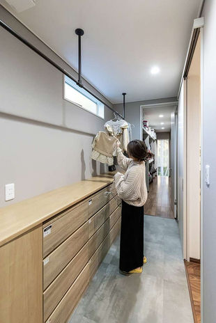 人間工学や建築医学などの科学的アプローチから、本物の暮らしやすさを追求している同社。家事も効率化を重視し、一人ひとりの生活サイクルやライフスタイルを細かくヒアリングし、サッとしまえる収納をはじめ、配膳・片付けのしやすいダイニング・キッチン、収納付きランドリールームなど、家事をラクにする間取りを提案。特に限られた空間でもゆとりある広さを創出するのが得意なので、遮るもののない動線設計も魅力のひとつだ。