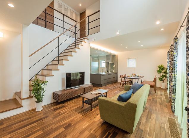 富士エリアに根付き70年以上の同社は、土地探しからサポート。富士ひのきの柱や土台のほか、自社工場でつくる木質繊維系のエコ断熱材を標準仕様とした省エネ住宅であることに加え、全棟が長期優良住宅に対応する性能を持つなど、長く安心して住み続けられる家づくりで熱い支持を集めている。さらに2022年からは太陽光発電標準化に取り組み、全棟ZEHに。人や環境にやさしい素材や性能にこだわった住まいは子育て世代にも好評だ。