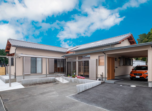 「高性能の家を手の届く価格でご提供したい」と考え、長年にわたり努力と工夫を重ねてきたイデキョウホーム。自社工場で製造する富士産eco断熱(セルロース断熱材)や富士ひのきの4寸柱などを標準仕様とした、環境や健康に配慮した住まいが、平屋をはじめ1000万円台から実現する。富士・富士宮を中心に静岡県の補助金制度の情報にも精通しているので、まずは気軽に相談を(写真の建物は1000万円台)。
