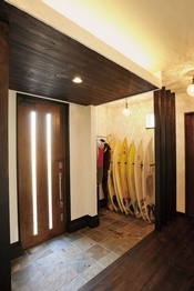 サーフィンや釣りなど、趣味を楽しむ家族が多いのも、湘南エリアの特徴。地場に密着したサンキホームでは、これまで実に多種多様な収納を提案してきた。アウトドアグッズを一挙に収納できる玄関そばの土間収納は、生活も余暇も存分に楽しみたい施主に大人気!他にも、各居室を広くとるためのファミリークローゼットや、家事室やデスクまわりに日頃必要なものを揃えておくための造作収納など、ライフスタイルに合わせて提案は多彩。