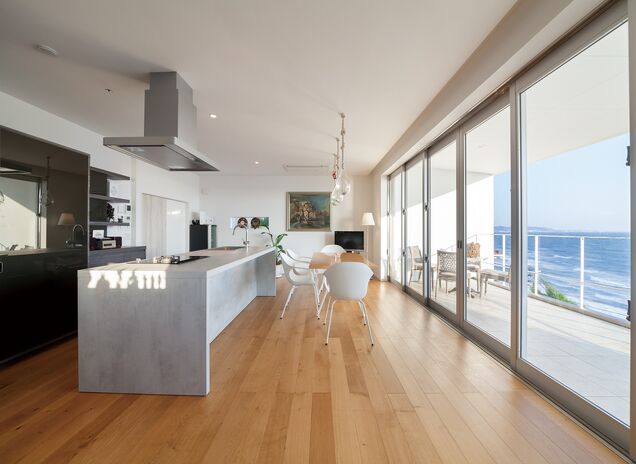 左官業を前身に創業から90年。全棟構造計算や耐風計算を行う強靭な構造に、オリジナルの漆喰や国産無垢材など厳選した自然素材を用い、湘南の気候風土を活かした家づくりをおこなっているサンキホーム。ZEHビルダー登録事業者である同社は、UA値(外皮平均熱貫流率)0.6以下を最低標準とし、省エネ性能の追求にも妥協はない。豊富な経験と実績を誇る職人集団の技術力により、安心・安全な住まいを実現する。