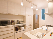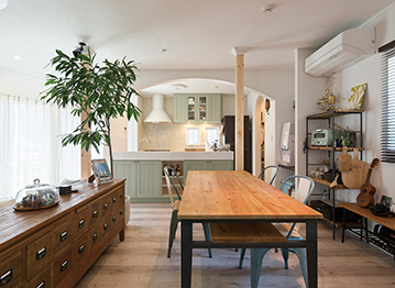 ご家族それぞれの生活スタイルをじっくりヒアリングし、家事をスムーズに行うには「どんな動線がいいのか」を考え、暮らし方に合わせた最適な間取りを提案。毎日使うキッチンや洗面、浴室などは機能的でコストパフォーマンスの良い機器をセレクト。また動線上に片付けやすく工夫した収納スペースを造作するなど、要望に合わせた「家事ラク」な家づくりを行っている。