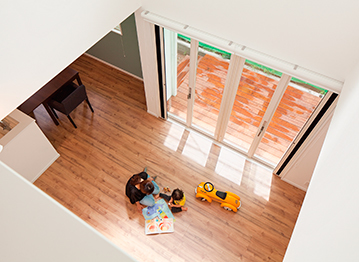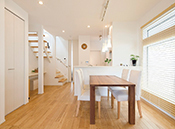 開放的な住空間をつくる上で、大切な要素が自然の風と光の取り込み方。敷地を見てその条件に合わせた建物の配置や夏と冬の日差しや風の向きを確認し、窓の大きさ、位置など設計とデザインを工夫。風が通り抜け、太陽の光を取り込むことで、一年中快適に暮らせる心地よい住まいとなる。自然の恵みを上手に活用し、通風・採光に配慮した住まいは、光熱費の軽減にもつながる点も見逃せない。