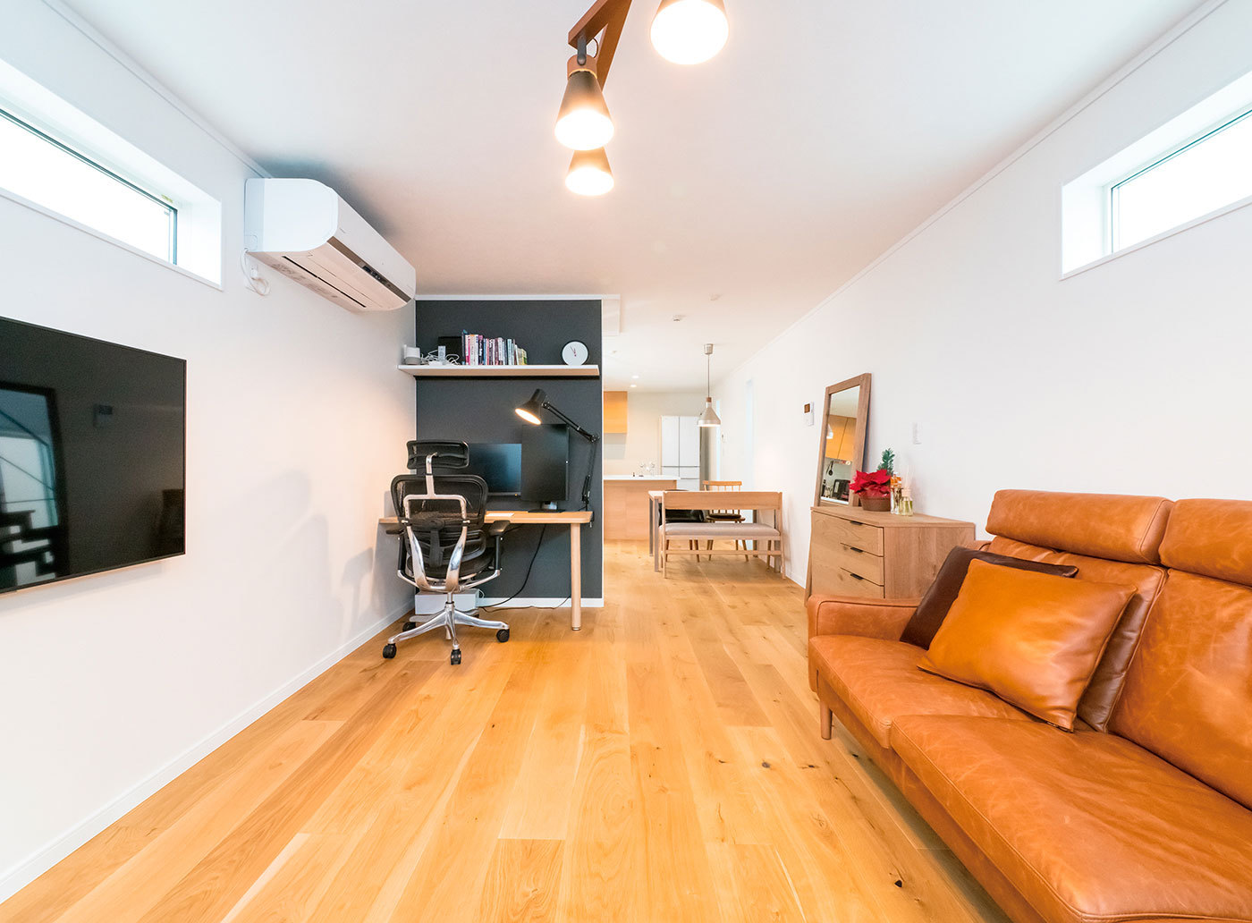まずは「こんな風に暮らしたい」や好きな色やインテリアのイメージを余すことなく伝えよう。雑誌やネット上の写真のクリップなどを活用すると伝わりやすい。家族のライフスタイルや好みを把握し、こだわりいっぱいのインテリアを提案。スタイリッシュなデザイン住宅を数多く手がける同社だから、「NO」という言葉ではなく、「工夫すれば大丈夫です」という言葉が返ってくる点も嬉しく、頼もしいと感じられる。