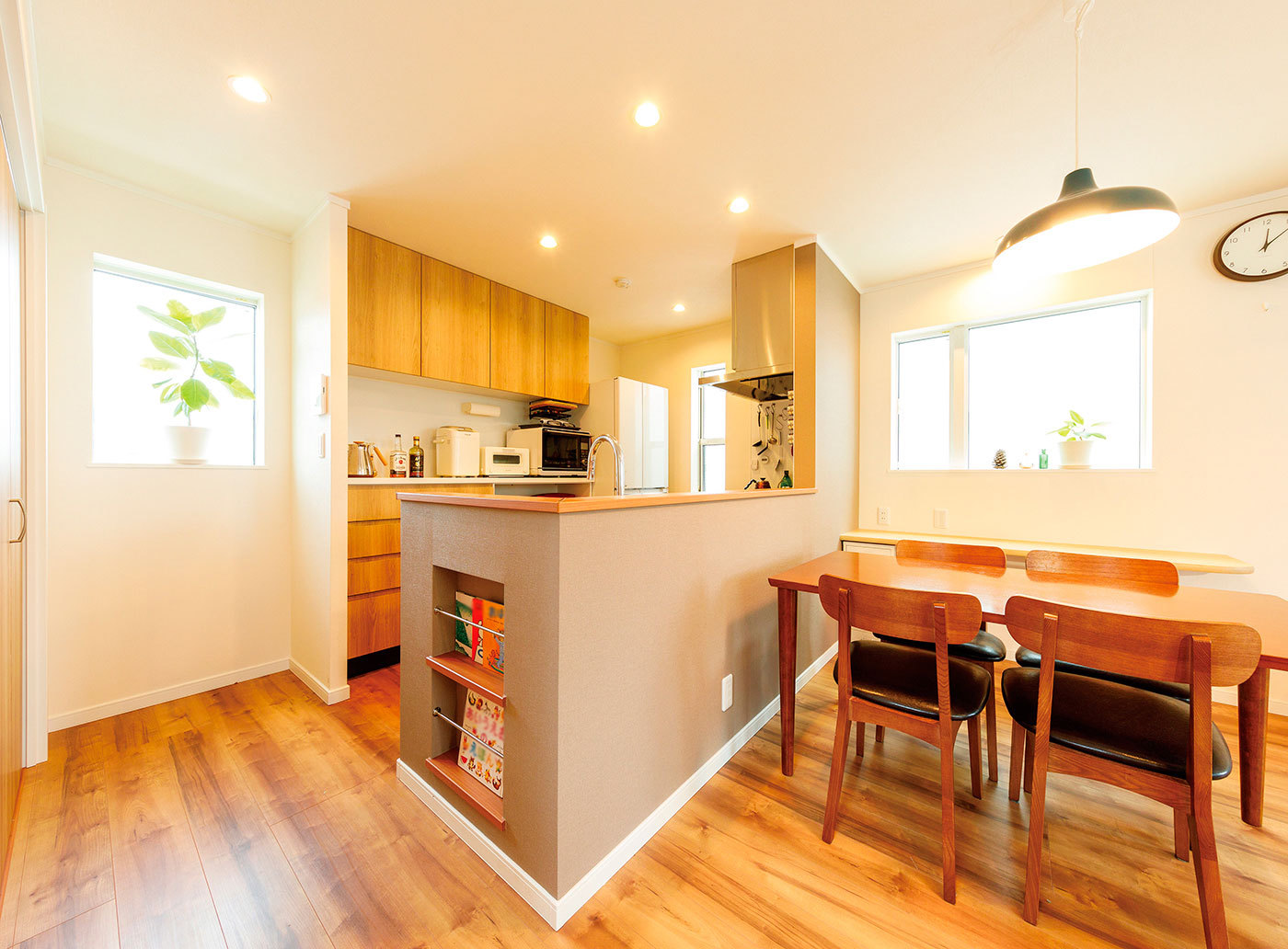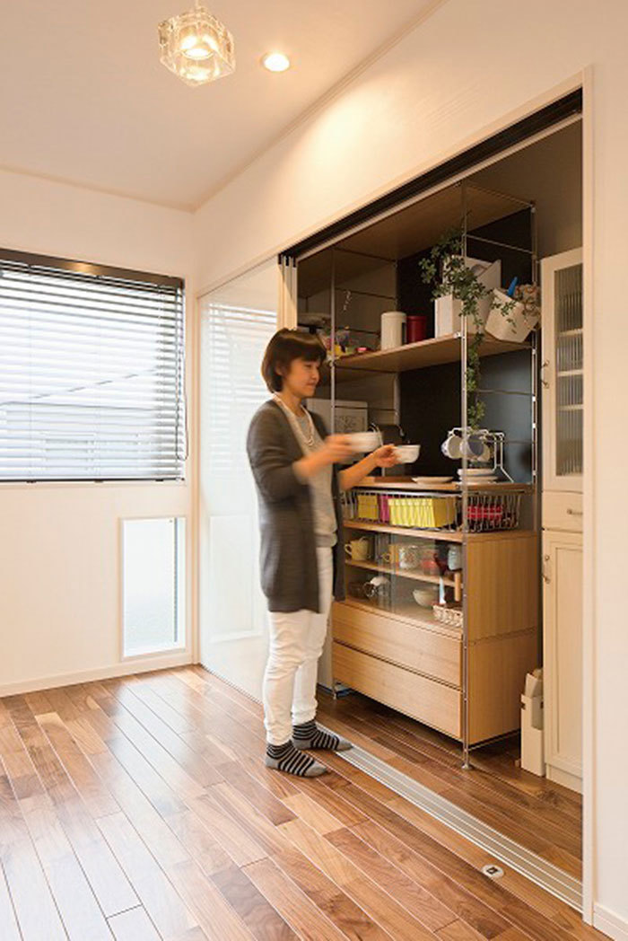 スタイリッシュなデザインの家づくりが人気のプロネット。同社はプランニングの際、家族やライフスタイルに合わせ、片付けやすい場所に必要な大きさや奥行きを考えた、「適材適所」の収納を計画し、室内はいつもスッキリで快適な暮らしが実現。また、ちょっとした空間も無駄なく活用したニッチや棚を造作し、「飾る」ことも楽しめる「見せる」収納などもデザイン。