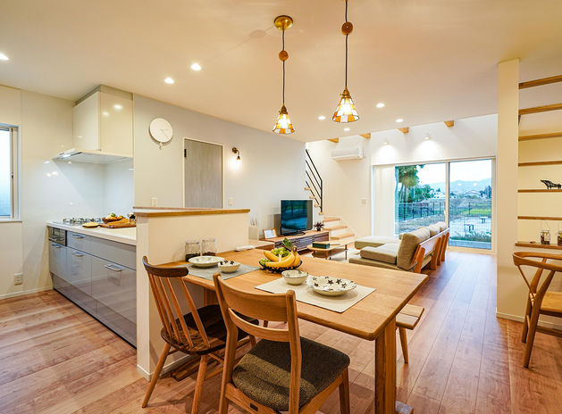 玄関から直接キッチンへ入れるママ思いな工夫に、畳コーナー含めて22畳の大きなリビングで家族も嬉しい家。健康にも配慮し、室内環境をクリーン化した健康住宅「炭の家」を採用。上質な空気をつくりだす"炭"の効果に着目し、人と住まいの健康を守る理想型をつくりあげた。初めての家造りは不安がいっぱいだが、同社は細やかな提案で1棟1棟を丁寧に造り上げるのが魅力。夢を育む生涯の住まい造りを全力でサポートしてくれる。