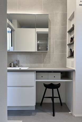 Gハウスでは磨き上げた設計力と技術を活かし、「家事の時短」を追求。キッチンを中心に洗面やランドリー、収納をつなぐ動線計画や、家事楽を叶える設備の採用など細やかな配慮には目を見張るほど。IoTも全棟標準搭載で、給湯器やエアコン、家電などが外出先から操作できたり、好みの設定で自動制御も可能。換気システムにより埃や汚れを抑え、掃除時間の軽減を図るのも、先進的な発想を持つ同社ならではの魅力である。