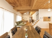 無垢材に囲まれた、ログハウスかのような住まいでの暮らしは、まるで「おうちリゾート」。そんな心地いい住まいを、無理なく無駄なく実現するのがエイ・ワン。同社の住まいづくりは「無垢材×自由設計×コスパ」。もともとログハウスから始まった同社だからこそ、自然素材をふんだんに使用した住まいを叶えてくれる。「無理のない家づくりで豊かな生活を送ってほしい」との想いから創られた住まいを確かめてほしい。
