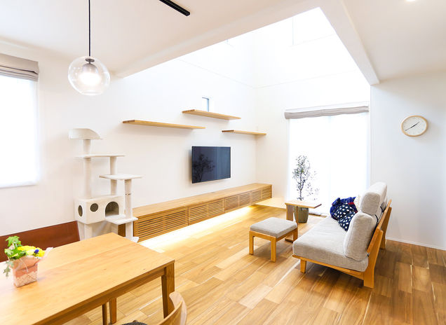 エアコン1台で年中快適な住環境を作り出す、全館空調YUCACOシステムの家を提供するデワホーム。夏でも冬でもちょうどいい温湿度に保たれた住まいはペットにとっても心地よいもの。冷暖房の風を直接受けないため、エアコンが苦手な犬や猫も快適に過ごすことができる。さらにペットが暮らしやすいよう、キャットステップや愛犬用スペースなど、要望に合わせて提案可能。ペットと一緒のハッピーライフを叶えよう。