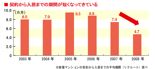 不動産・住宅サイト SUUMOトップ>> 住まいのお役立ちノウハウ>アンテナSUUMO>契約から入居までの期間が短期化 建物の完成前後に買う人が増えた