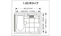 システムバスのサイズは床面積のことをさし、戸建住宅用の製品は主に0.75坪、1坪、1.25坪の3種類がある。1坪タイプが主流だが、1.25坪タイプを取り入れる家庭も増えてきているのが最近の傾向。 |