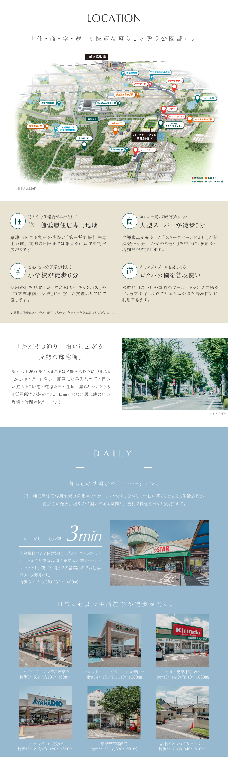 ※草津市の市街化区域面積1984.4m2に対して、第1種低層住居専用地域は47.5m2で、面積割合は約2.3%となります。(滋賀県ホームページより)