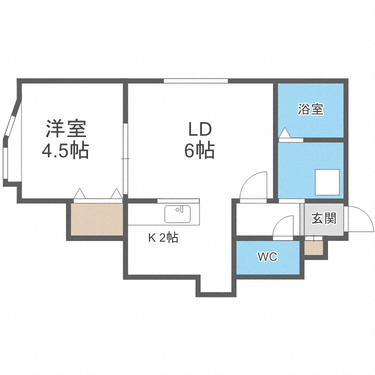 1LDK | 4.5万円 | 28.6平米 | 北 | 相談 | お問い合わせする(無料) SUUMOで詳細を見る |