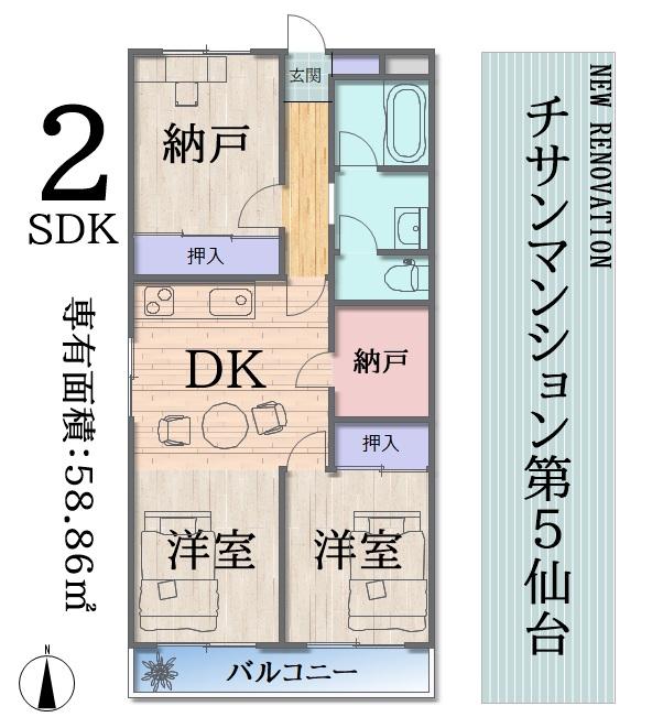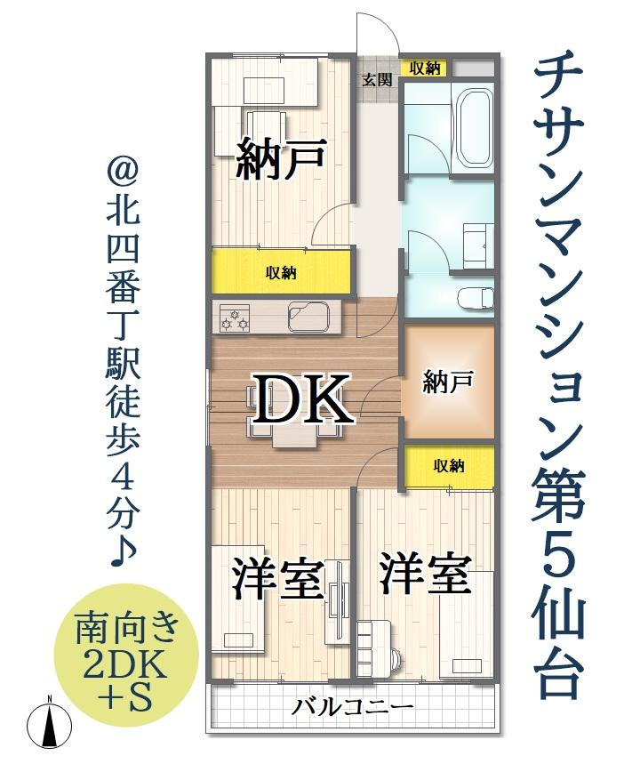 2DK+S(納戸) | 1480万円 | 58.86平米(17.80坪)(壁芯) | 南 | 即引渡可 | お問い合わせする(無料) SUUMOで詳細を見る |