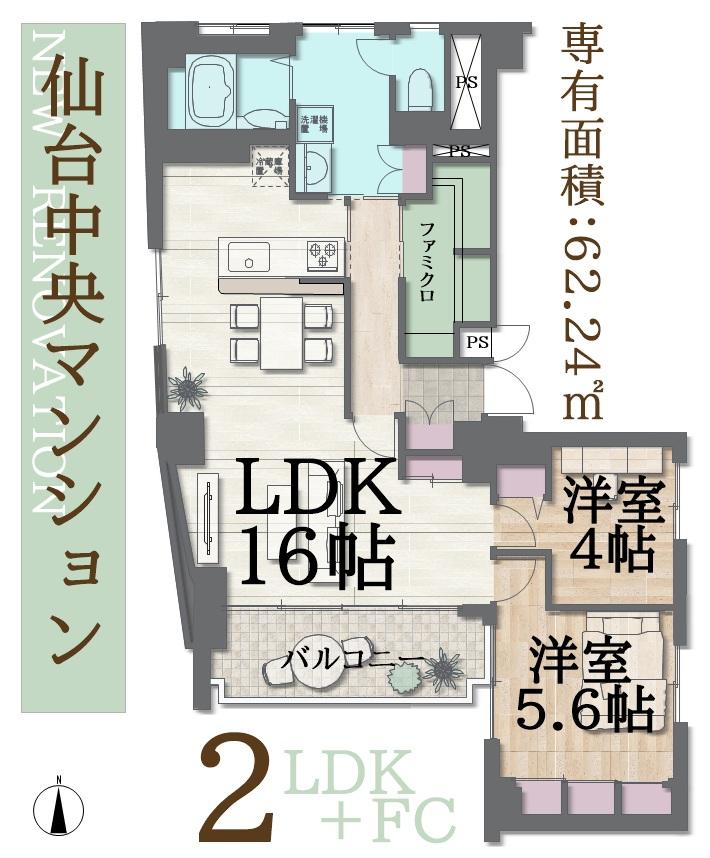 2LDK | 1790万円 | 62.24平米(18.82坪)(壁芯) | 南 | 相談 | お問い合わせする(無料) SUUMOで詳細を見る |