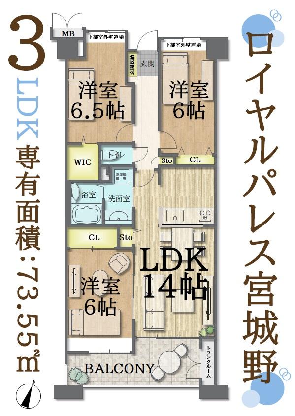 3LDK | 2298万円 | 73.55平米(22.24坪)(壁芯) | 南 | 即引渡可 | お問い合わせする(無料) SUUMOで詳細を見る |