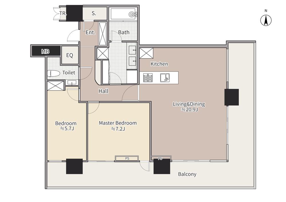 勝どき駅は、都営大江戸線-徒歩、都営大江戸線と、複数の路線を利用でき、さらに乗り換えなしで新橋駅まで14分で行くことができます。