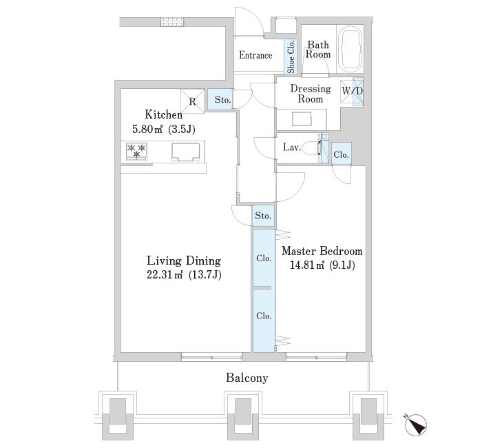 勝どき駅は、都営大江戸線-徒歩、都営大江戸線と、複数の路線を利用でき、さらに乗り換えなしで新橋駅まで14分で行くことができます。