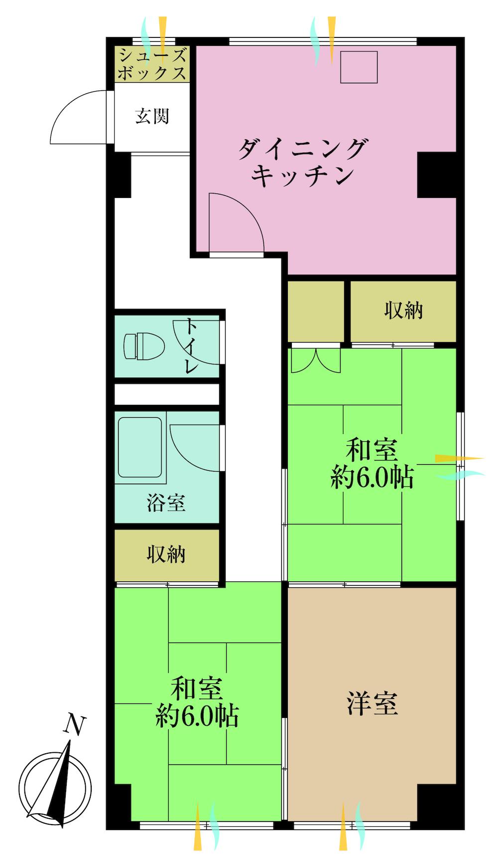 3DK | 2900万円 | 62.27平米(18.83坪)(壁芯) | 北東 | 相談 | お問い合わせする(無料) SUUMOで詳細を見る |