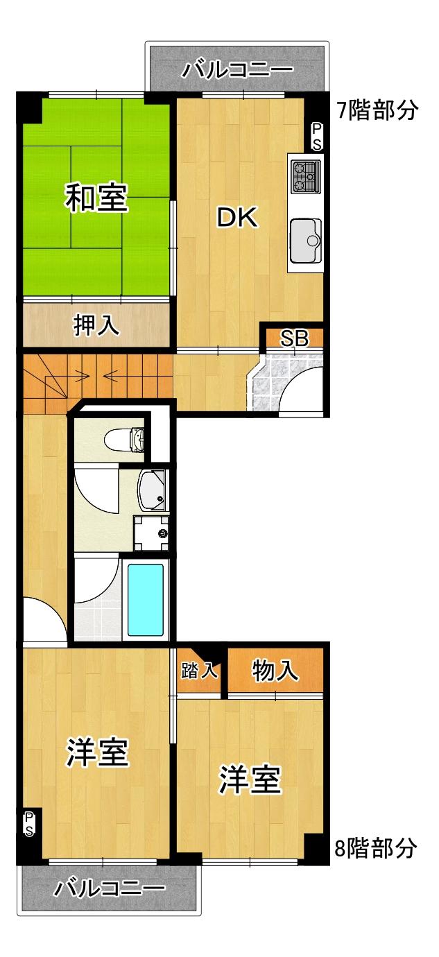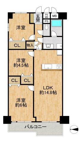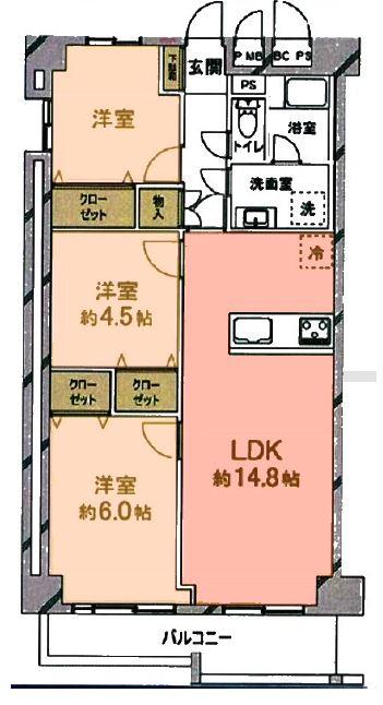 3DK | 1470万円 | 68.75平米(20.79坪)(壁芯) | 南西 | 相談 | お問い合わせする(無料) SUUMOで詳細を見る |
