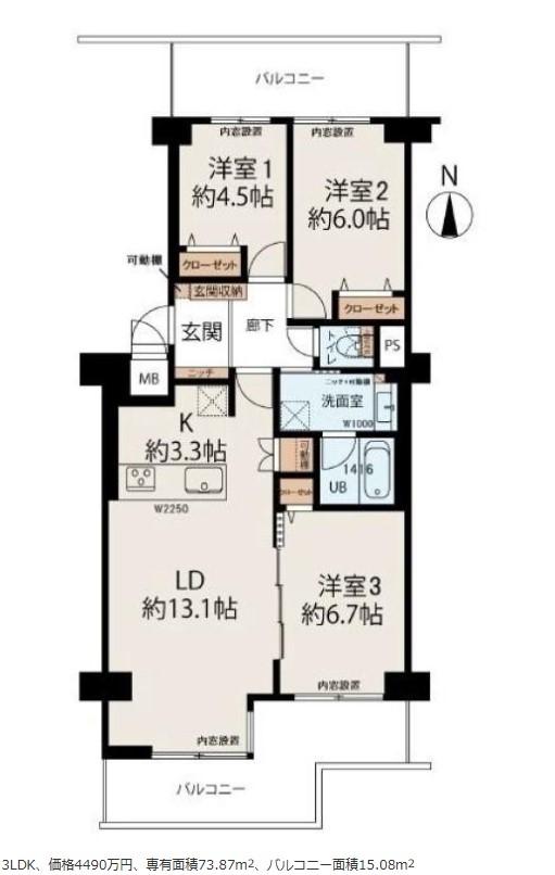 3LDK | 4490万円 | 73.87平米(壁芯) | 南 | 相談 | お問い合わせする(無料) SUUMOで詳細を見る |