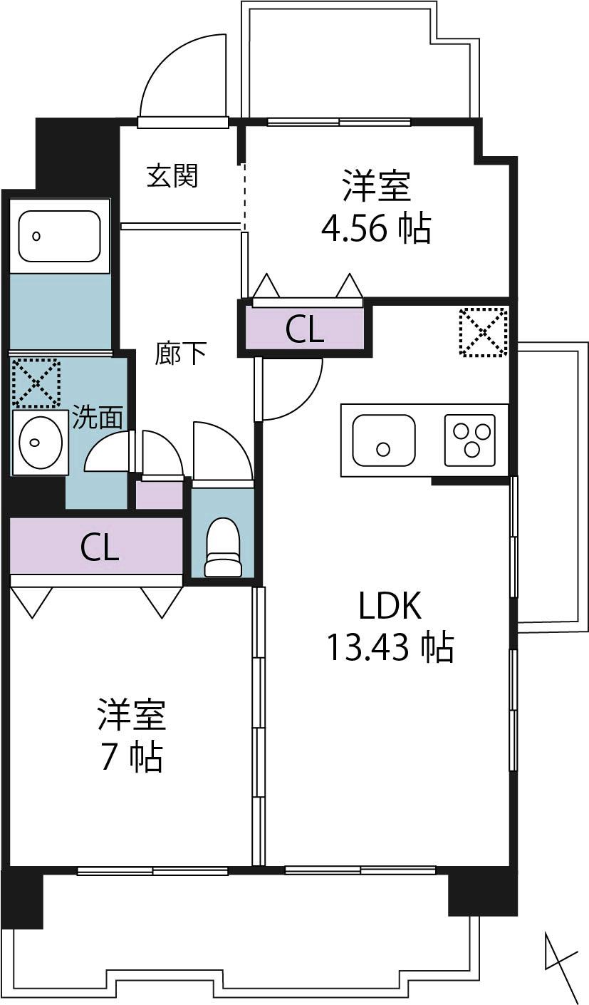 2LDK | 2480万円 | 59.15平米(17.89坪)(壁芯) | 南西 | 相談 | お問い合わせする(無料) SUUMOで詳細を見る |