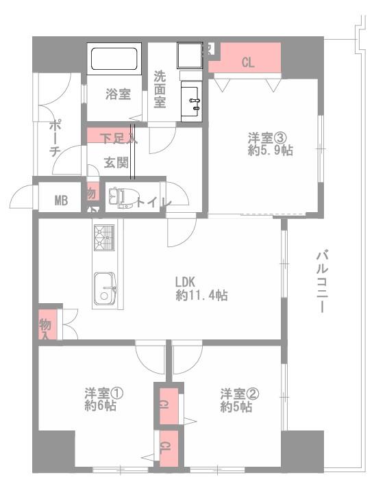 3LK | 5198万円 | 63.64平米(壁芯) | 西 | 相談 | お問い合わせする(無料) SUUMOで詳細を見る |