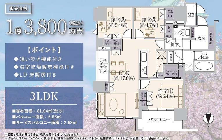 3LDK | 1億3800万円 | 81.04平米(24.51坪)(壁芯) | 東 | 即引渡可 | お問い合わせする(無料) SUUMOで詳細を見る |