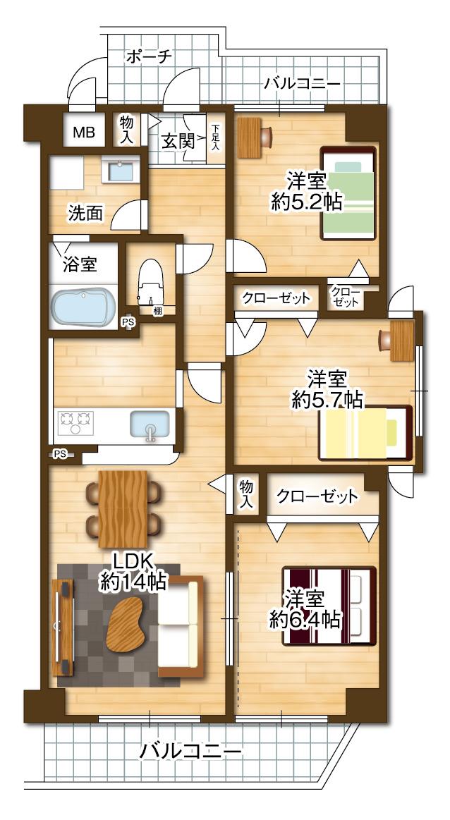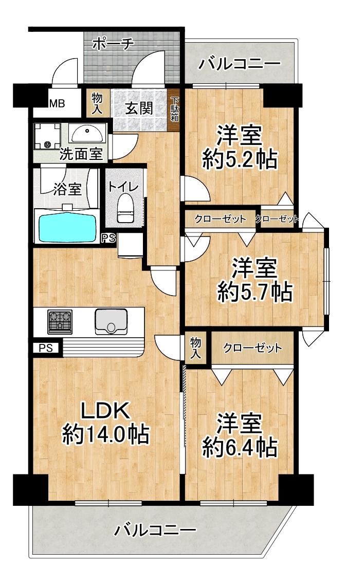 3LDK | 2980万円 | 69平米(壁芯) | 南 | 即引渡可 | お問い合わせする(無料) SUUMOで詳細を見る |