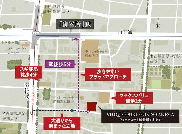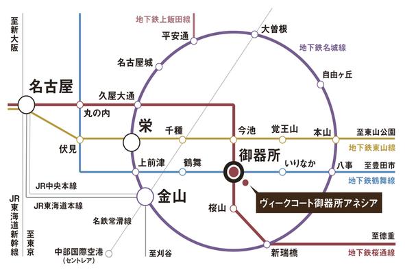 最寄りの地下鉄「御器所」駅は桜通線と鶴舞線の2路線を利用できます/アクセス図