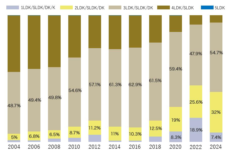 新築分譲マンションは、1LDK・2LDKの住戸が増加中
