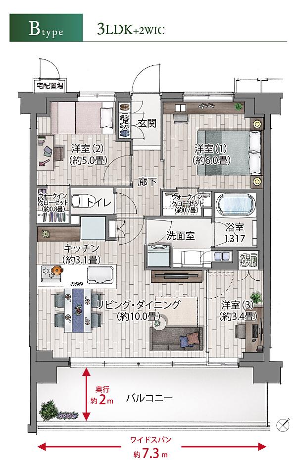 【Btype】3LDK+2WIC