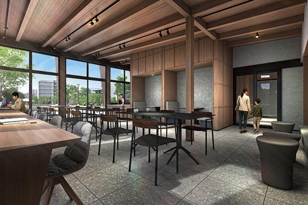 のらえもん「パブリックなコミュニティカフェと、プライベート感のあるワーク&スタディブースを使い分けでき、多様な働き方ができる点も魅力。大規模マンションでもスーパーマーケットが併設しているプロジェクトは多くないので、商業施設が複合する点は大きなメリットです」