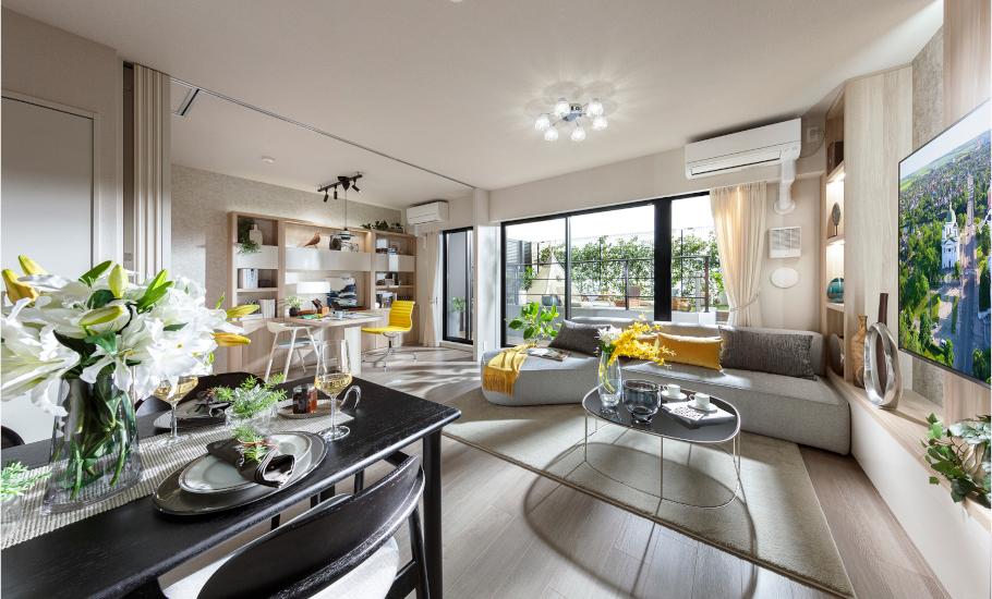※掲載の室内写真は、モデルルーム(Fsgタイプ)を2025年8月、10月に撮影したもので、一部有償オプションが含まれます。有償オプションには対象住戸・申込時期および、変更できる内容に制限があります。設備・仕様はタイプにより異なる場合があります。詳しくは係員にお問い合わせください。家具・照明・調度品・備品等は販売価格に含まれておりません。