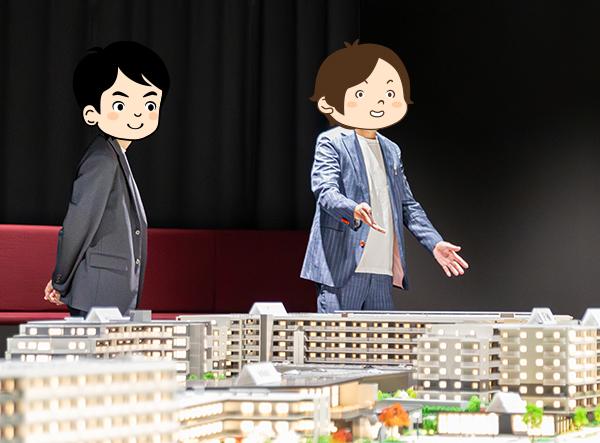 のらえもん「まず驚いたのが、街区全体の大型模型です。〈西千葉レジデンス アベニュー〉の建物だけでなく、商業施設、戸建エリア、学生マンション、そして広大な『キャンパスパーク(※1※2)』まで、75,000m2超の全体像が再現されていて、プロジェクトのスケール感を実感できます」