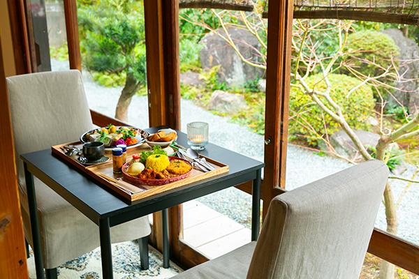 和風庭園の景色を眺めながら、美味しい料理を堪能できる窓辺の席は一番人気!
