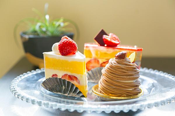 定番のショートケーキやモンブランをはじめ、季節のフルーツを使ったケーキも多数!